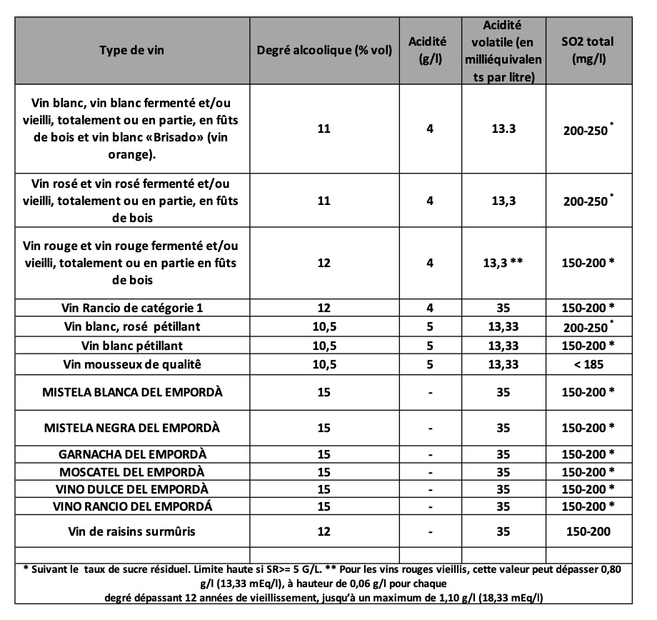 LES LIMITES MAXIMALES POUR L’ANHYDRIDE SULFUREUX TOTAL SONT COMPLÉTÉES
