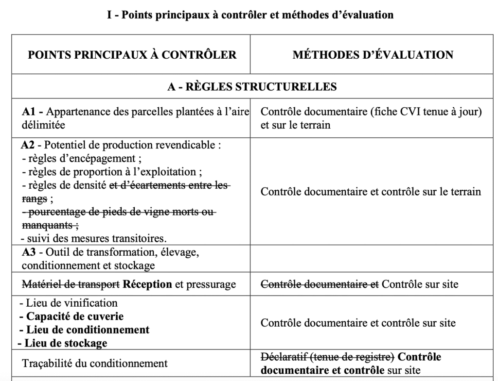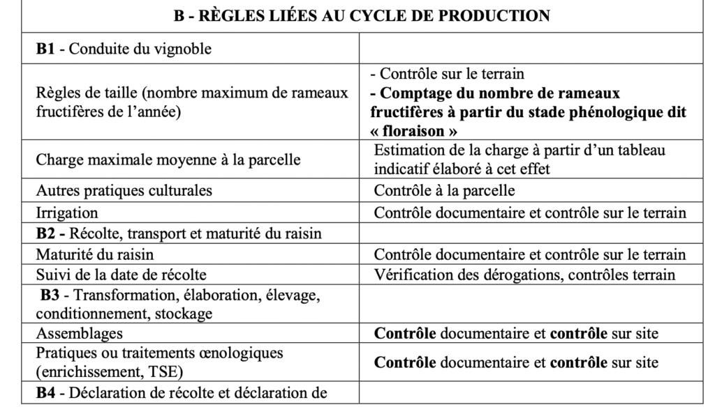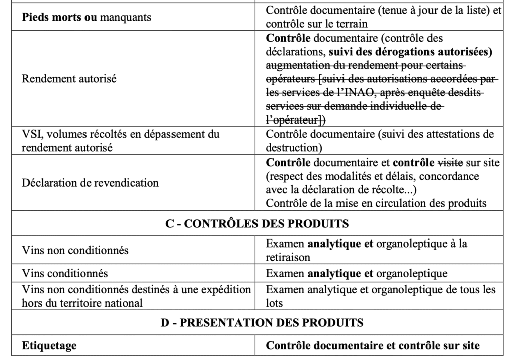 Il indique les contrôles externes réalisés par l’organisme tiers ainsi que les examens analytique etorganoleptique. L’ensemble des contrôles est réalisé par sondage. Les vins non conditionnés destinés àune expédition hors du territoire national font l’objet d’un contrôle analytique et organoleptique systématique.