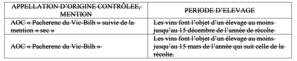 Source : 122 Avis relatif à l’ouverture d’une procédure nationale d’opposition pour la demande de modification du cahier des charges relatif à l’appellation d’origine contrôlée « Pacherenc du Vic-Bilh »