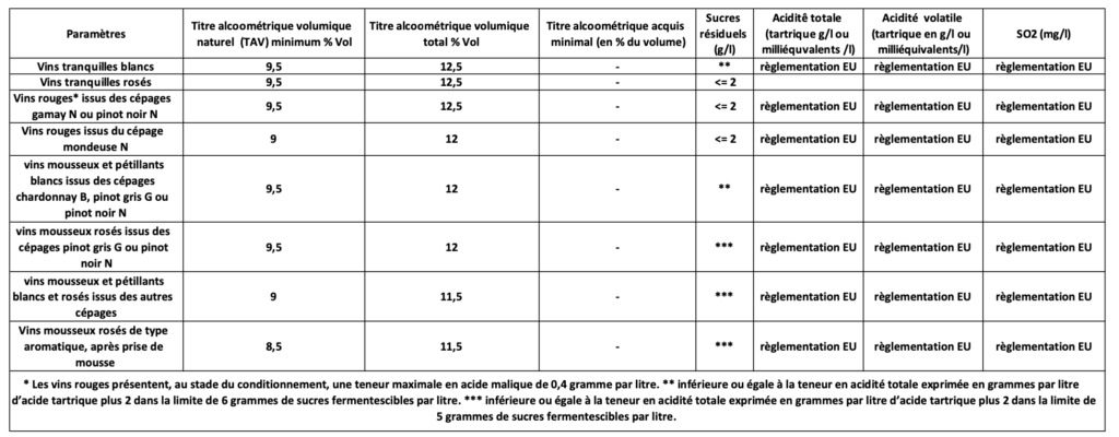 – cépages accessoires : aligoté B, altesse B, jacquère B, Mondeuse B, pinot gris G.