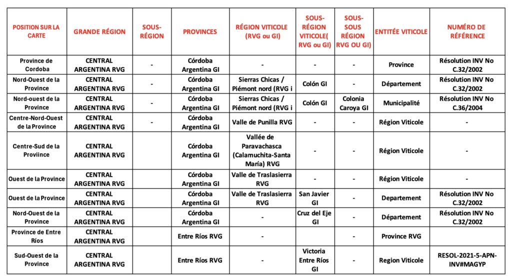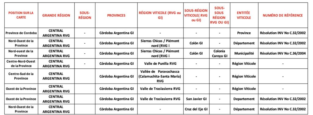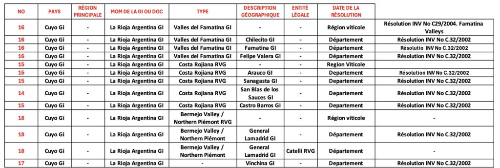 Ensemble de GI départementales (pas d’IG collective « Valle del Bermejo »)