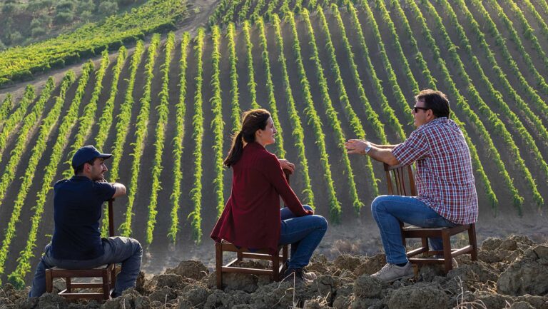 In central Sicily’s Agrigento province, sprawling wheat fields and wild barley, chickpea, and lentil crops surround and protect the vineyards at Feudo Montoni in Cammarata, Italy, where organically farmed vineyards predate the European phylloxera epidemic. Fabio Sireci, the third-generation owner, observes, “If you must cut clusters, you’re too late. Winter pruning must set up the vine to create balance and the quantity you want by harvest.” Winter pruningleaves a select number of buds per plant, setting the foundation for how many grape clusters will be on those vines. This preparation is effective especially in older vines, where, explains Hood White, “You know how your site’s going to react over time.”