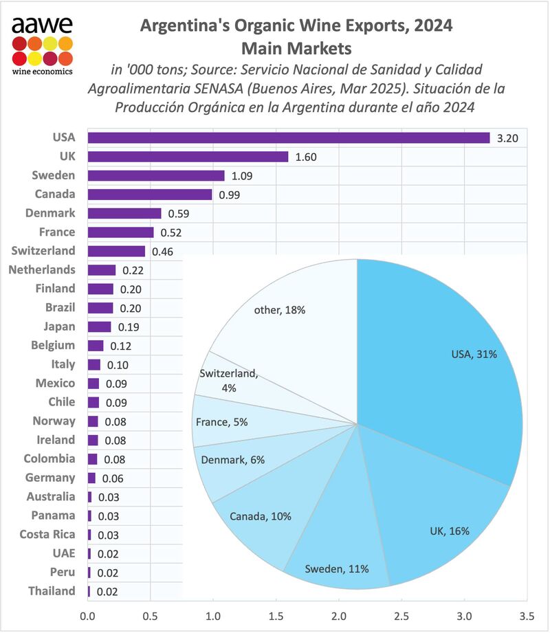 En 2023, l’Argentine a importé 7,65 millions de dollars de vin. En provenance principalement de : France (3,99 M$), Chili (1,3 M$), Italie (627 000 $), Espagne (543 000 $), Royaume-Uni (280 000 $).